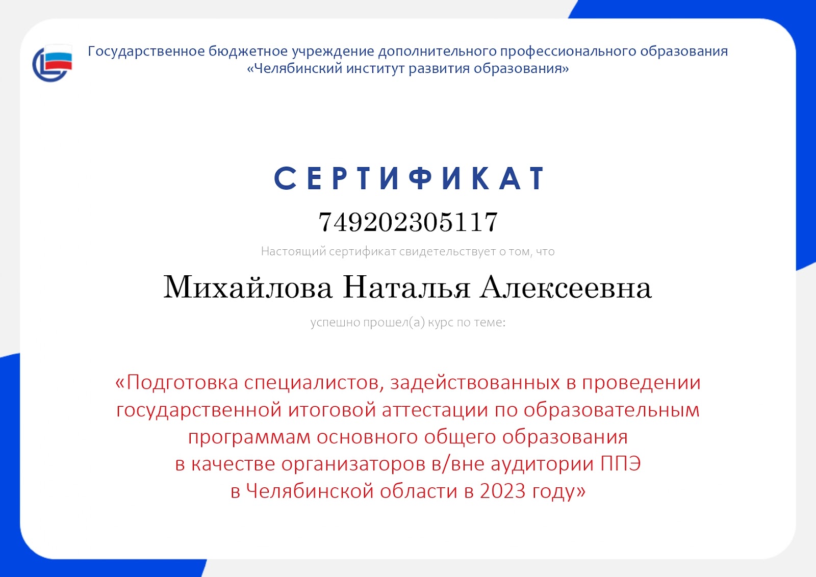 Повышение квалификации: